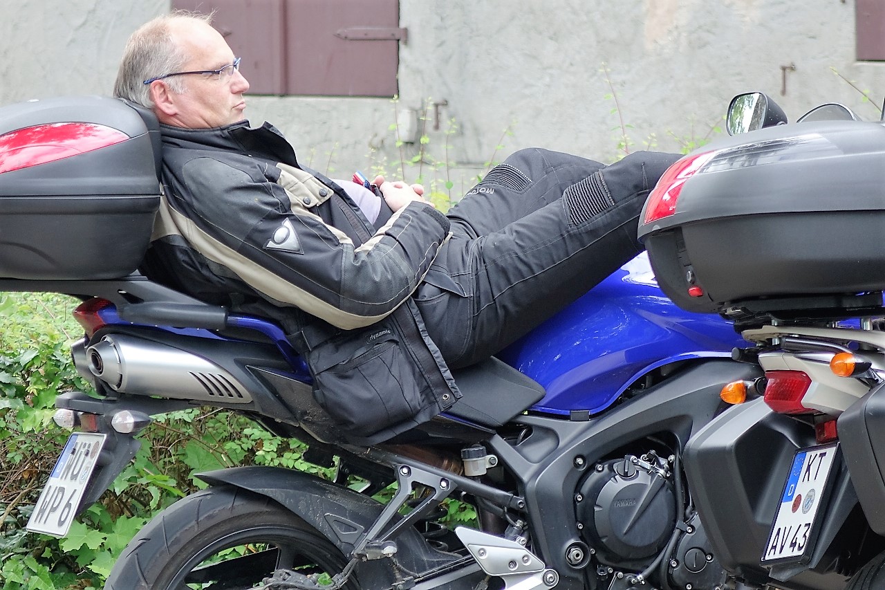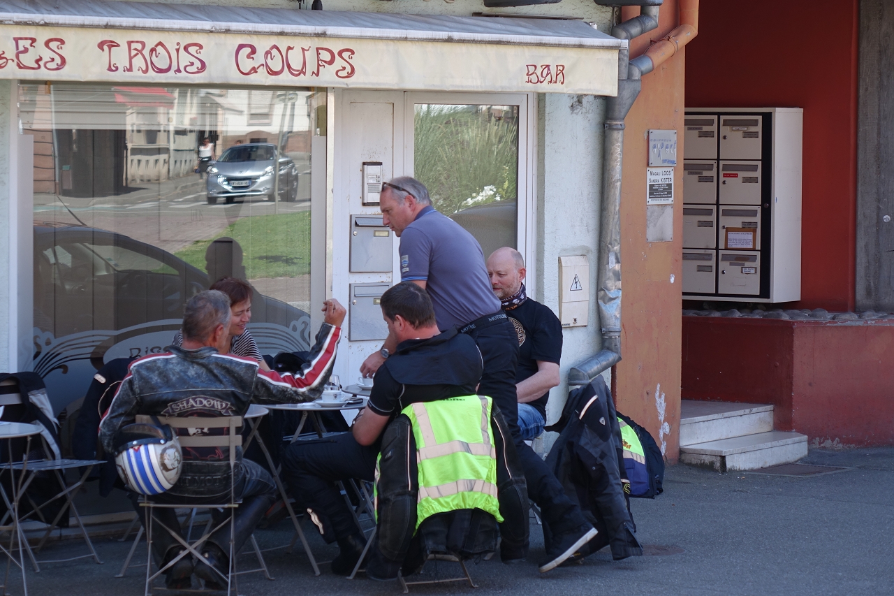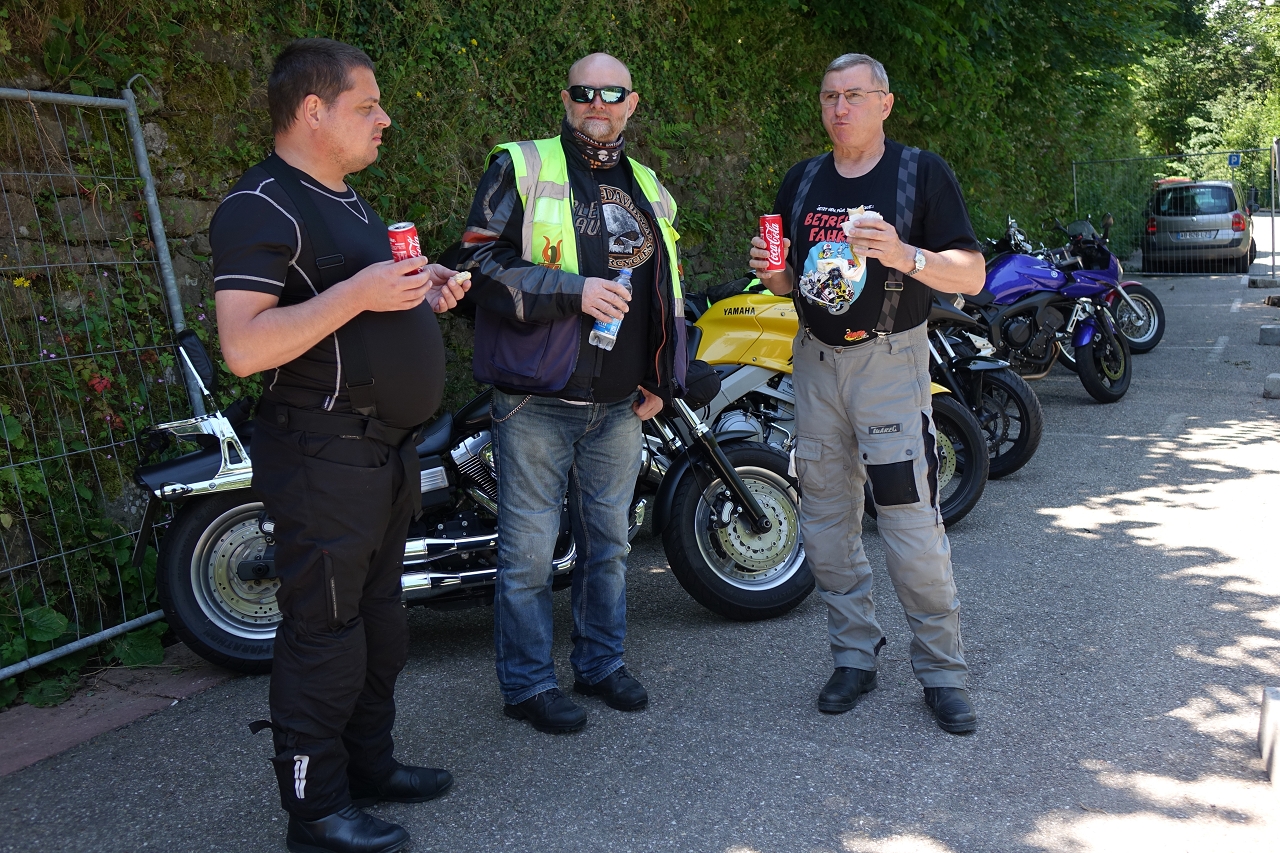 Macht nix, 7 Mann und ein Mädel ab nach Süden, nächster Halt „wo’s halt nen Kaffee gibt“. Das war dann in der Nähe von Bad Mergentheim, nach einer lustigen Dorfrunde gabs dann auch das erste Foto.