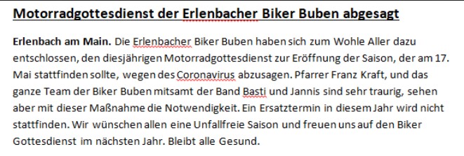 Re: 2. VMT Tour 2020 | „Zum MoGo nach Erlenbach“ | 17. Mai 2020