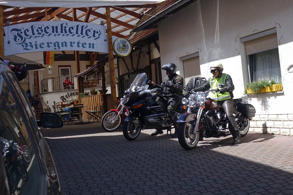 Am Felsenkeller war kreatives Parken angesagt, kurz danach das wohlbekannte Grollen und die erste Gruppe saß zügig am Mittagstisch, inklusive zufriedener Gesichter: