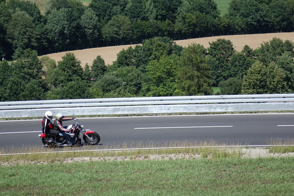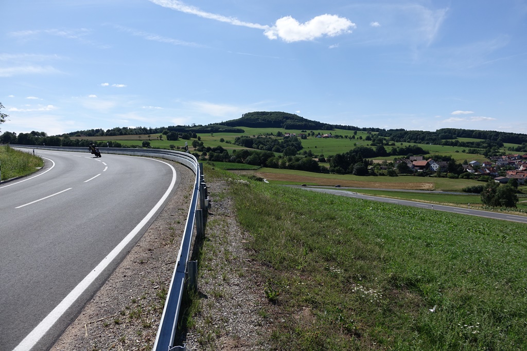 Zur letzten "Fotofalle" ab nach Motten, dort gab es prima Rhönsicht und eine gute Vor-Aussicht auf die Straße, zudem stand die Trude weit sichtbar vor mir am Straßenrand, die Mädels und Jungs konnten also noch vor der gezückten Kamera richtig posen und Haltung annehmen, Ergebnis der ersten Gruppe: