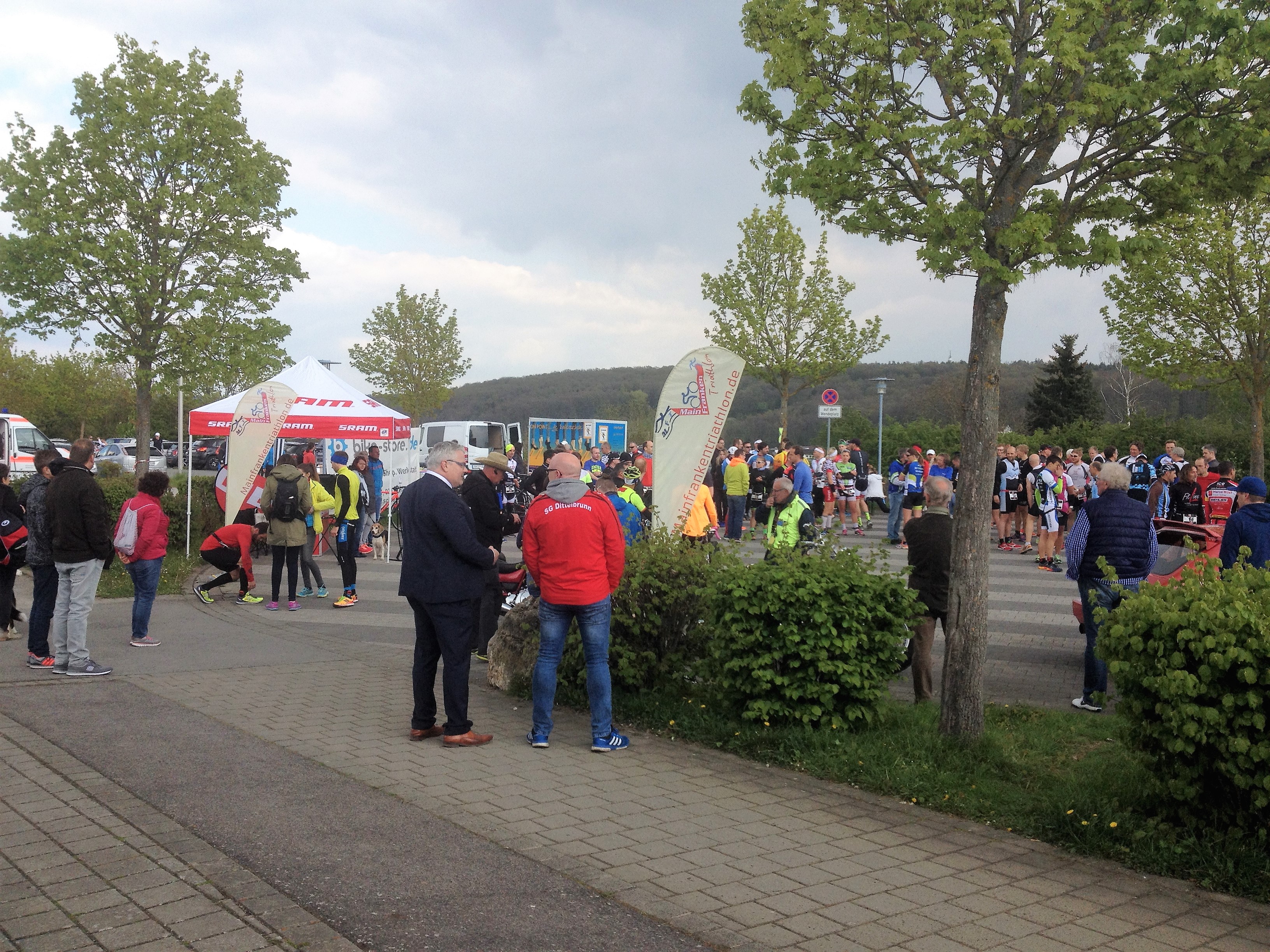 Tolle Stimmung heute Morgen beim ersten MainFrankenDuathlon oben am Sportzentrum in Dittelbrunn - die Athleten erwarteten immerhin in der Disziplin Classic 9km Laufen, 37km Radfahren und nochmals 1,5km Laufen, in der Disziplin Light waren es am Anfang „nur“ 3km Laufen.