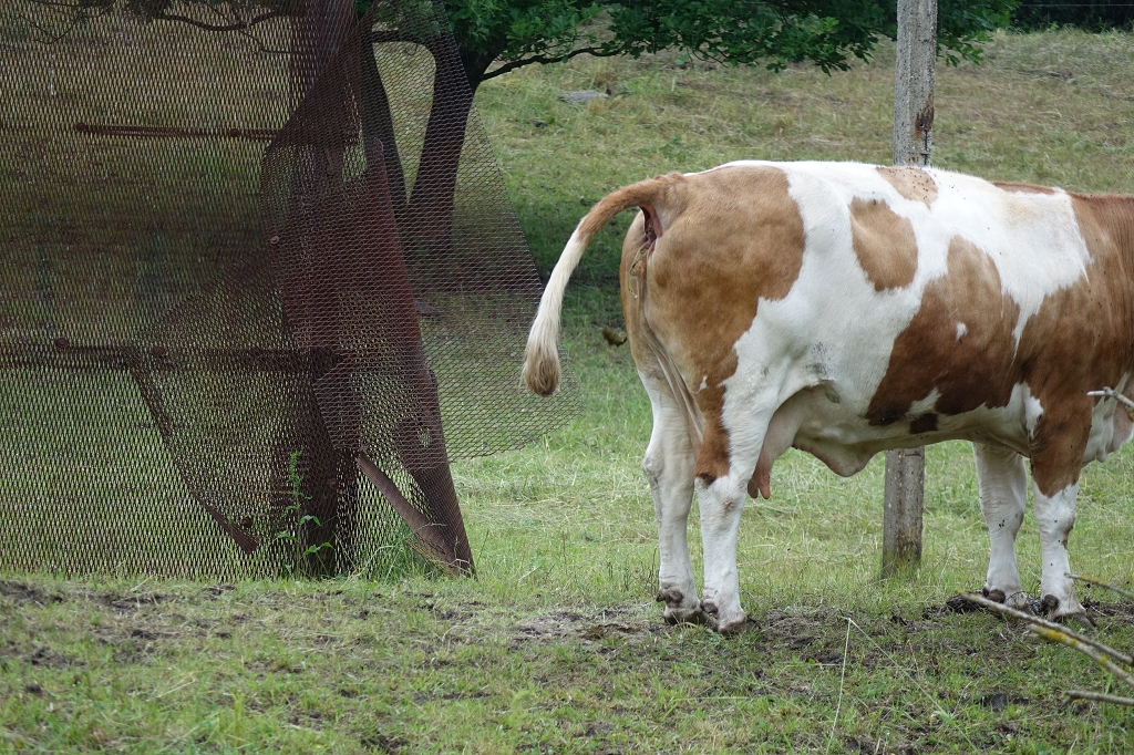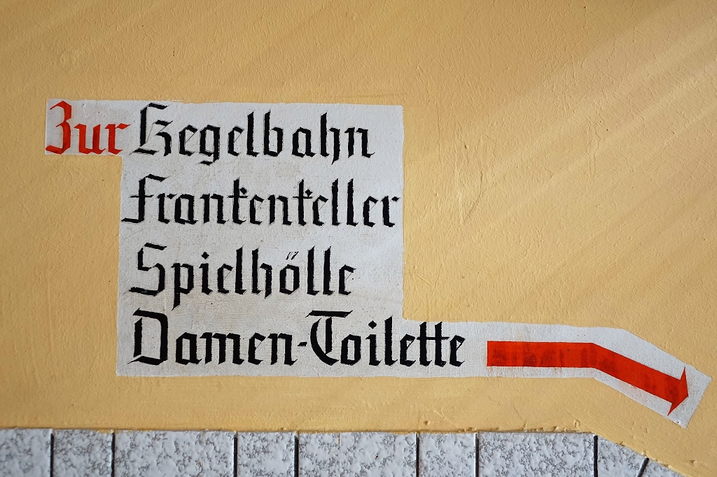 Am sichtbarsten sind noch die Reste der letzten Grenze, wir werden diese Schilder mehrmals sehen.