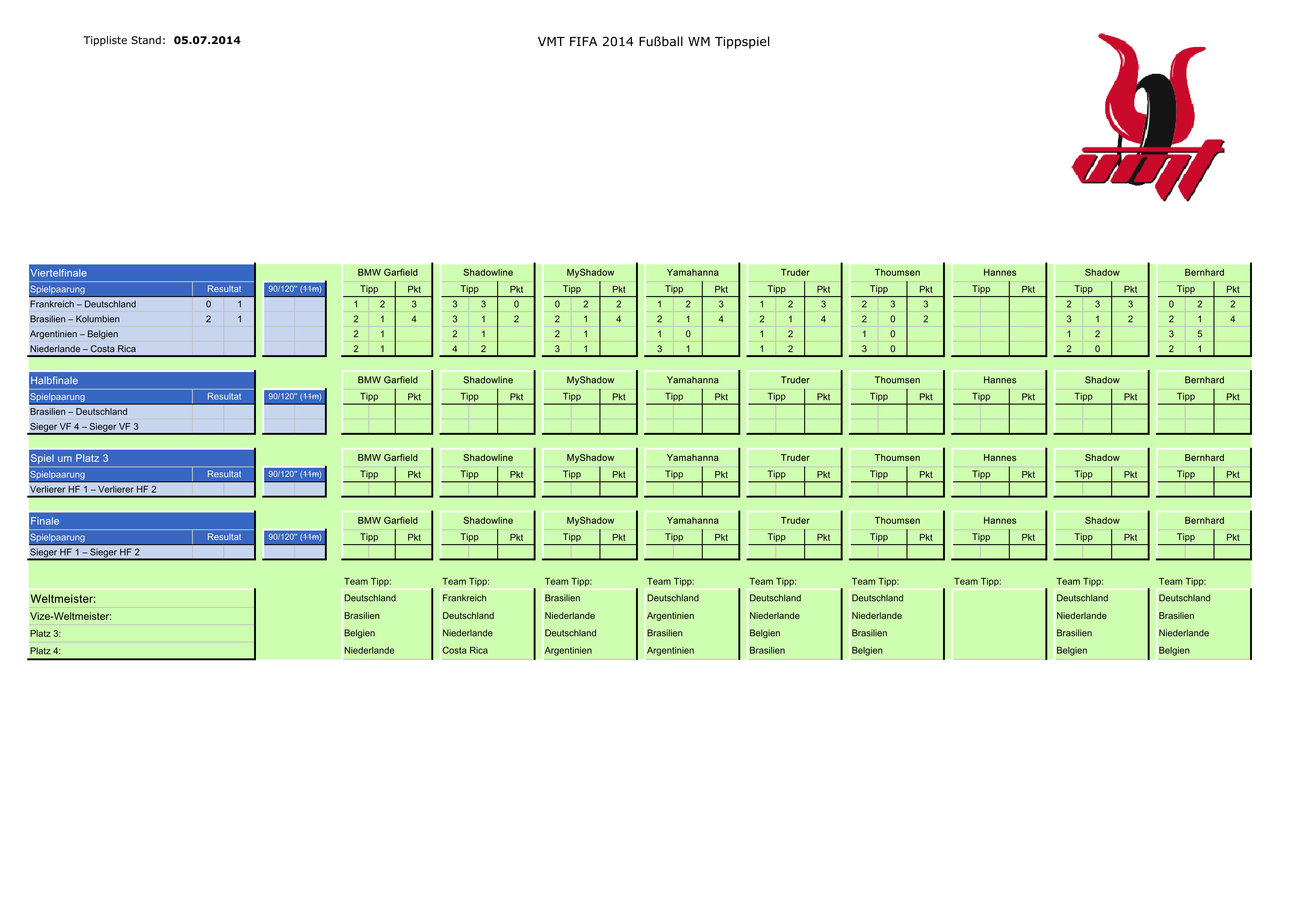 Re: Fußball WM 2014 VMT Tippspiel